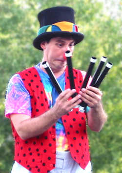 Greg McMahan features comedy throughout his show. Here he's trying to figure out where all the wands came from.